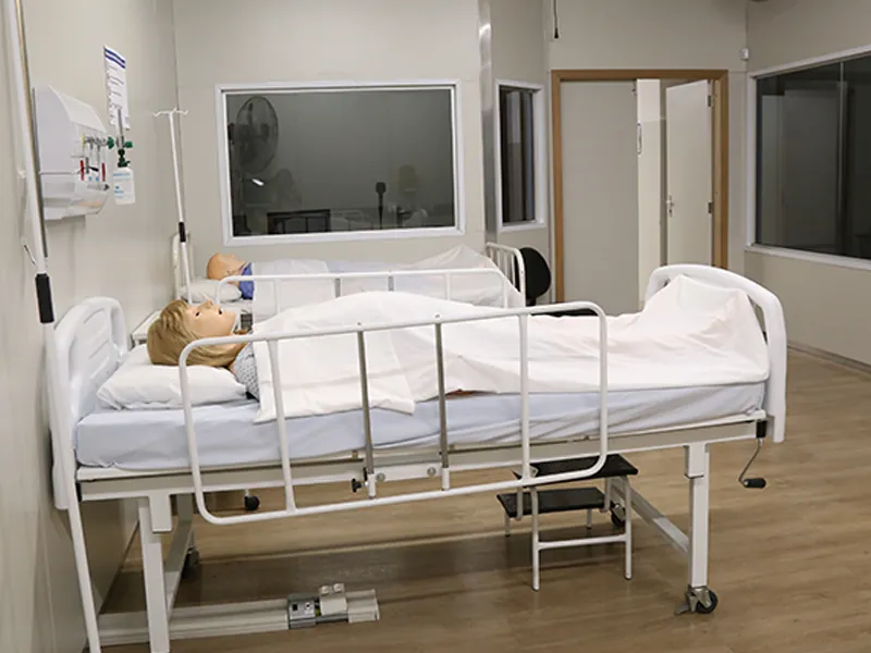 Neste laboratório, os estudantes vivenciam situações reais da prática profissional por meio de simulações avançadas, com manequins e equipamentos de alta tecnologia. O ambiente permite o desenvolvimento de habilidades técnicas, tomada de decisão e trabalho em equipe, preparando os alunos para atuar com segurança e precisão em cenários clínicos reais.