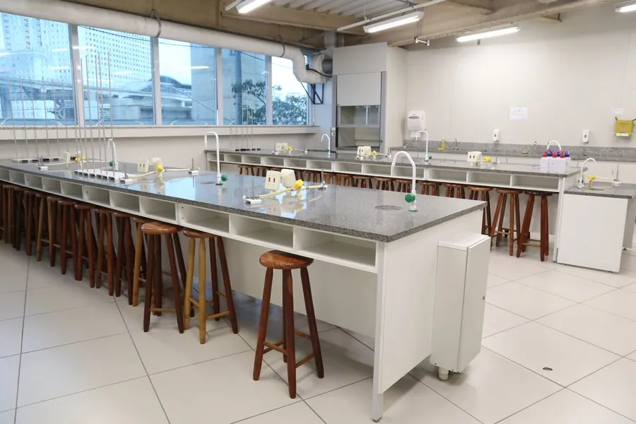 Neste espaço, os alunos analisam os processos químicos que ocorrem nos organismos vivos, relacionando teoria e prática por meio de experimentos e análises. O laboratório contribui para uma formação sólida nas bases bioquímicas da saúde.