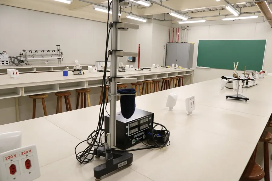 Espaço destinado à realização de experimentos que reforçam os conceitos teóricos da Física, promovendo a compreensão prática dos fenômenos naturais e tecnológicos.