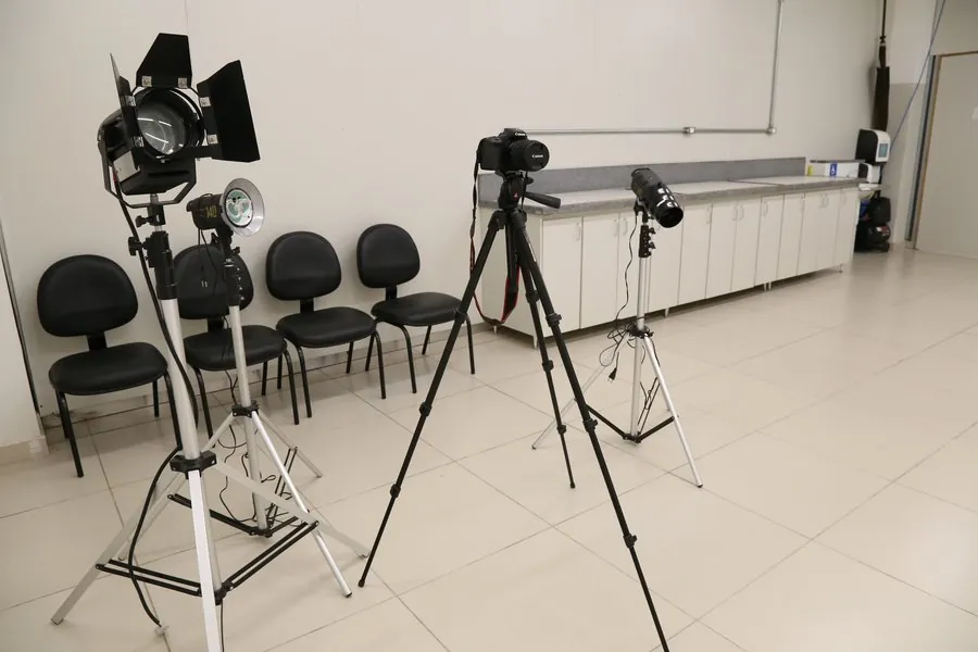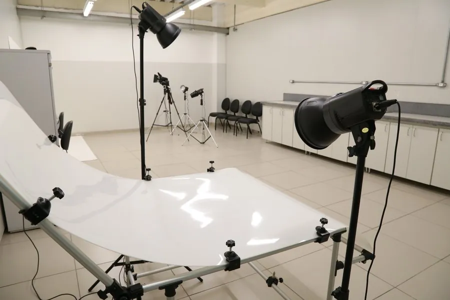 O laboratório oferece infraestrutura para práticas fotográficas, permitindo que os alunos desenvolvam técnicas de captura, iluminação e composição em ambiente profissional.