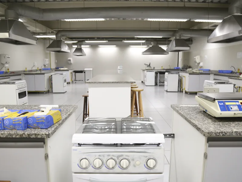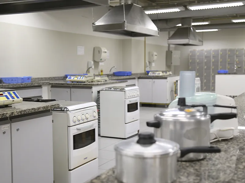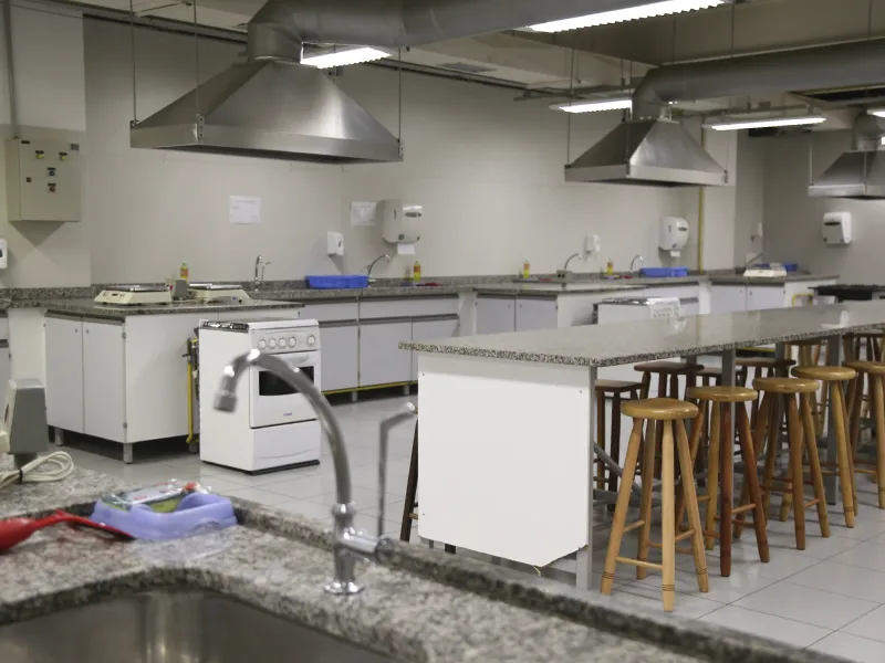 Aqui os alunos de Nutrição vivenciam na prática tudo o que aprendem em sala de aula. Equipado com cozinhas experimentais e estrutura completa para análises e avaliações nutricionais, o laboratório proporciona experiências reais de atendimento e planejamento alimentar. Um espaço essencial para formar profissionais prontos para os desafios do mercado.