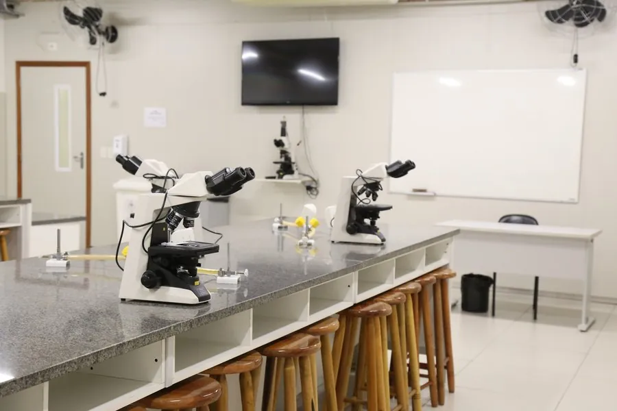 Com tecnologia de ampliação e projeção, o laboratório possibilita análises detalhadas de amostras biológicas, ampliando a compreensão visual e coletiva dos processos microscópicos.